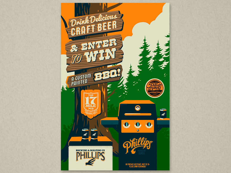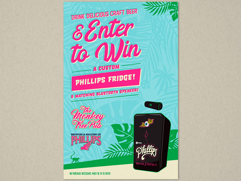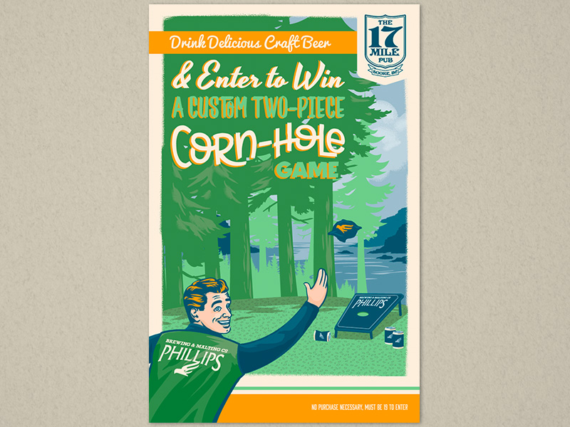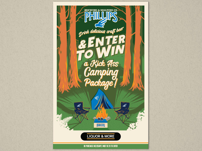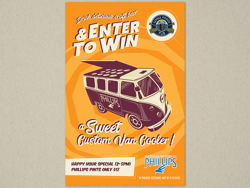 This is a selection of different contest and promo posters I did for some of the sales reps at Phillips Brewing. These were a lot of fun to work on because I was often tasked with humorous themes or concepts to incorporate into the posters. The timelines were usually fairly quick so they had to be simple as well. It’s always great to work on brands that are so open to creativity.