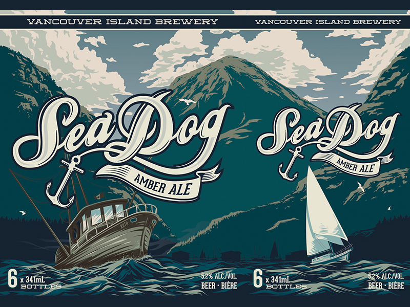 This project was part of a re-branding for Vancouver Island Brewery’s core brands. I worked on this with McAllister Marketing. The goal for the artwork for the core brands was to celebrate the Island landscapes. For this brand the brewery wanted highlight Vancouver Island’s historic fishing towns. All of the cases for the core brands are continuous scenes that wrap around the case.